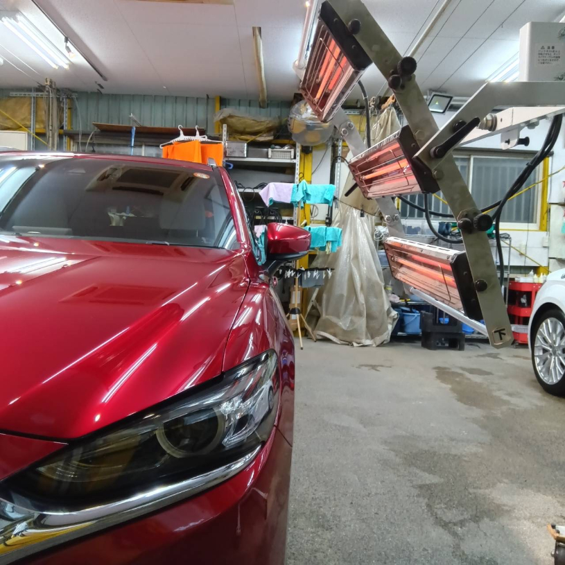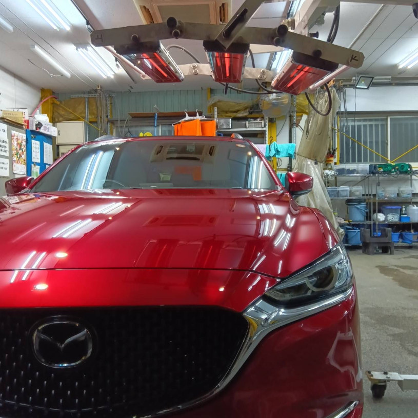 その後、セラミックプロを均一に塗布し、拭き取り → 赤外線ヒーターによる焼き付け硬化を行います。