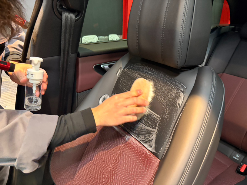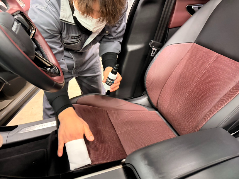 素材の質感や手触りを損なわず、見た目も自然な仕上がり。布・レザーどちらのシートにも対応可能です。