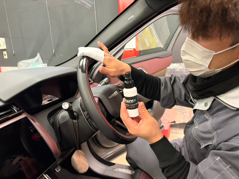 施工箇所は、運転席・助手席・ハンドル・センターコンソール・ドアトリムとなります。