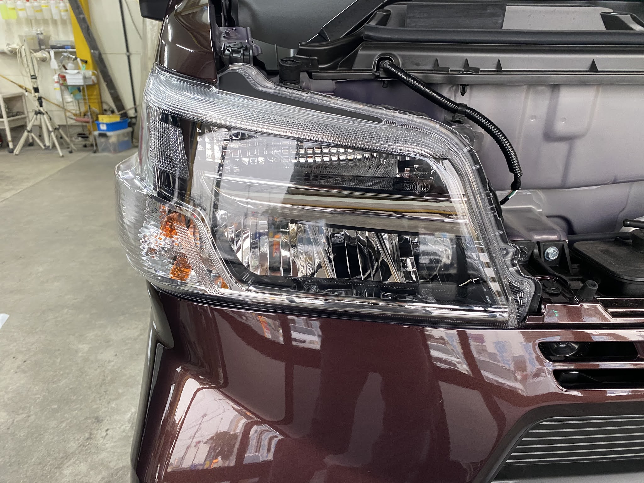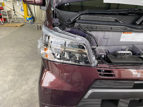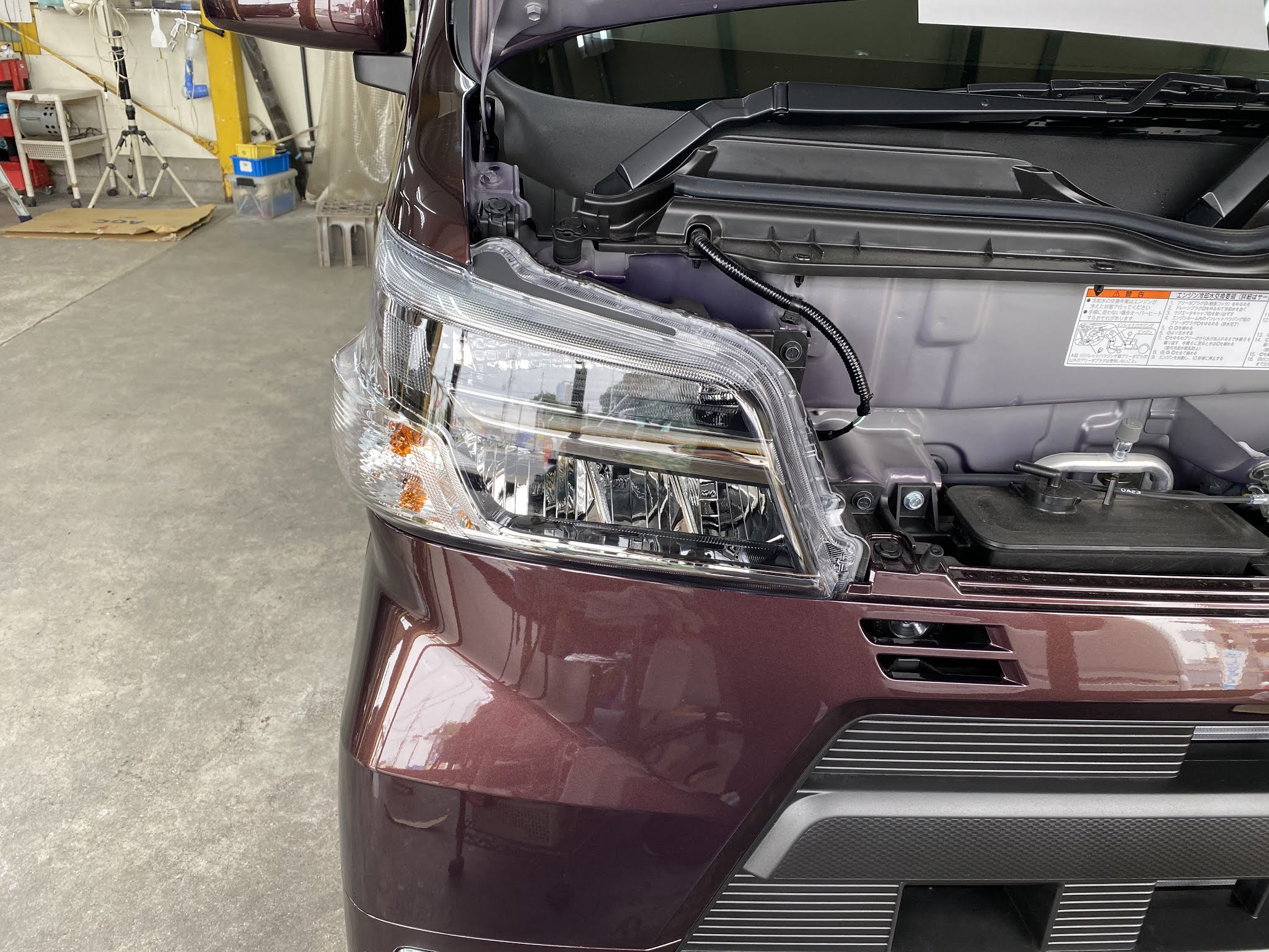 本日はダイハツ「アトレーワゴン」のヘッドライトに透明のプロテクションフィルムを施工しました。透明なのでよーく見ないと貼っているのがわかりませんが、バッチリヘッドライトを紫外線やキズから守ってくれます!
