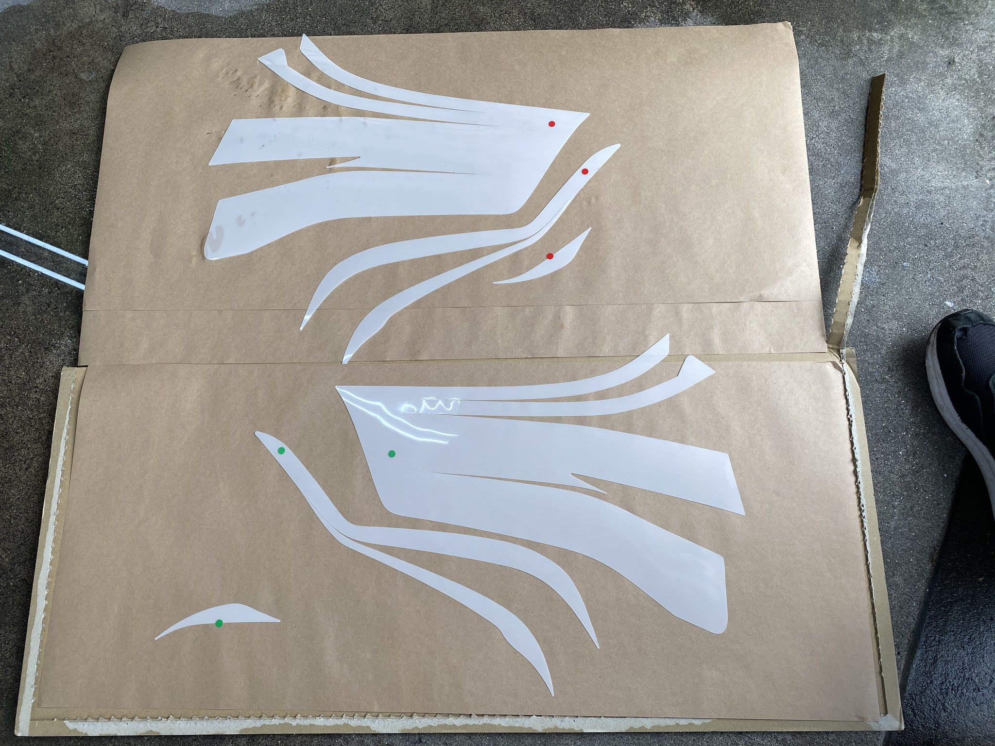 ヘッドライトの形に寄って分割張りになってしまいます。