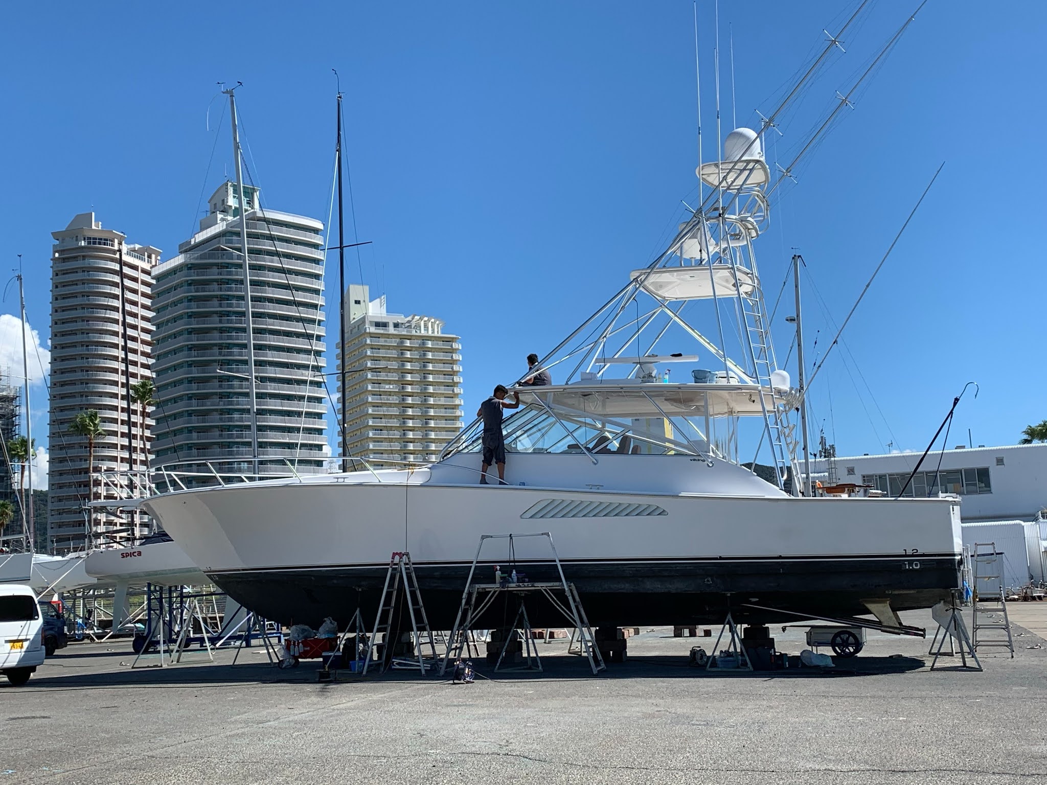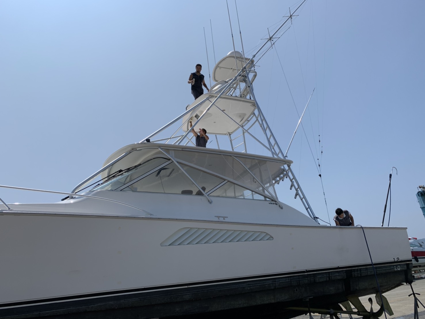今まで何回も船のコーティングをしていますが、今回の船も大きいです!