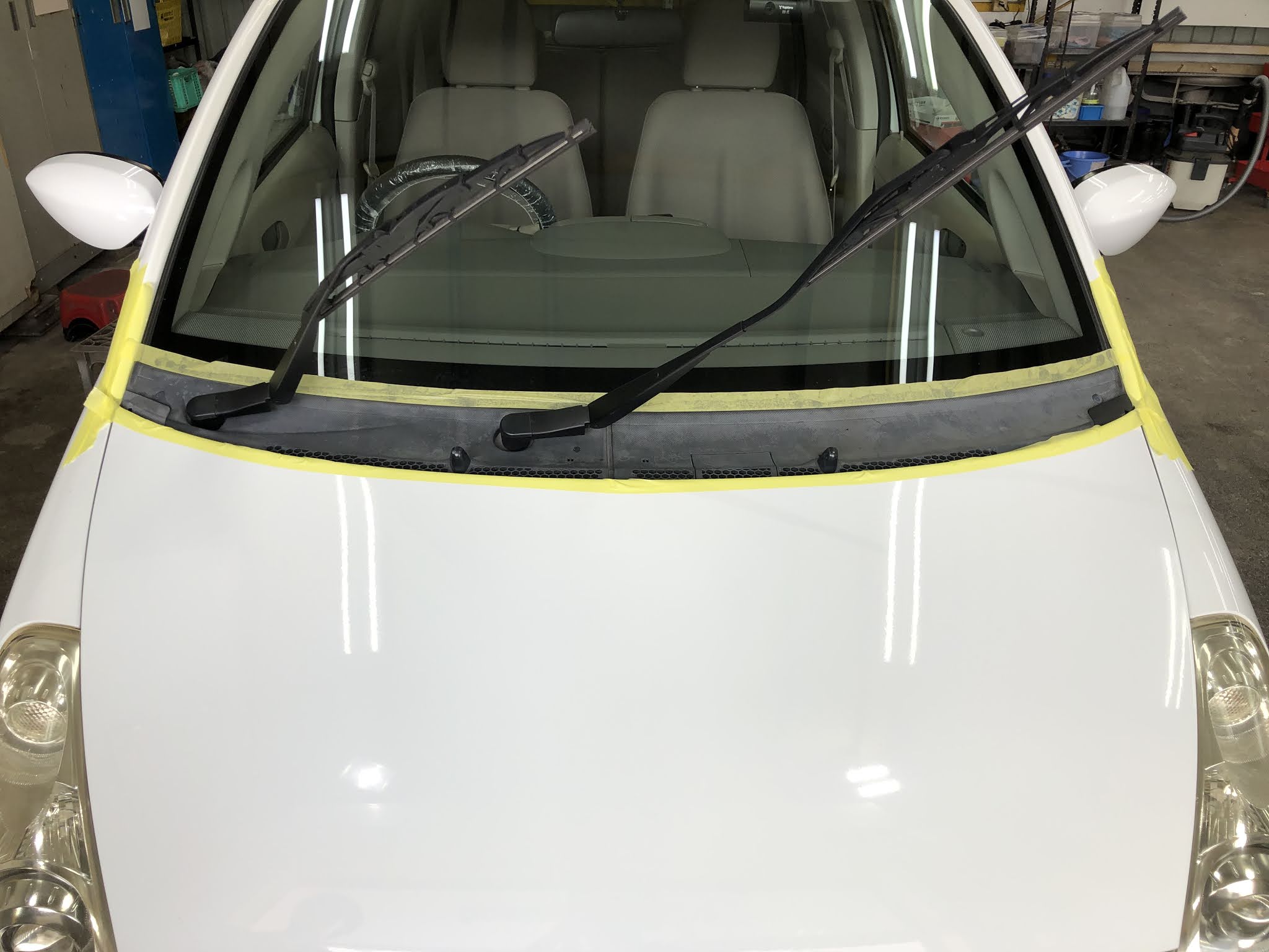 本日はスバル「R2」のカウルトップやフォグ周りの色の付いていない素地部品にコーティングを致しました。