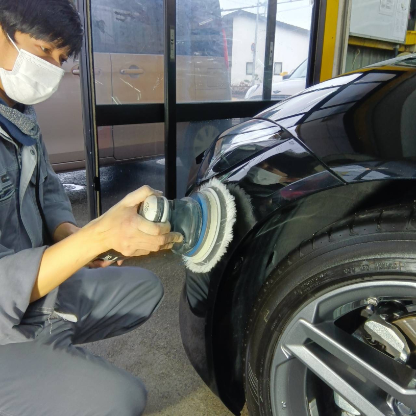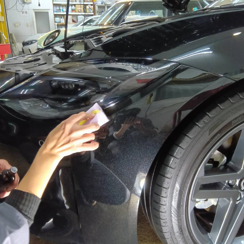 塗装面の状態を確認したうえで、まずは表面を整えるための磨き作業を行い、その後コーティングを丁寧に塗り込んでいきます。