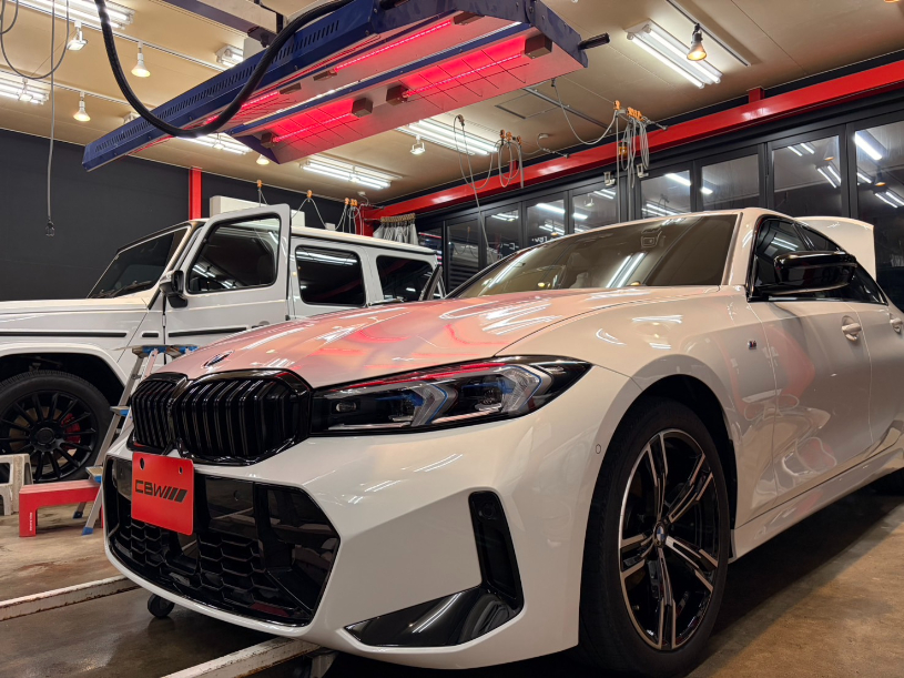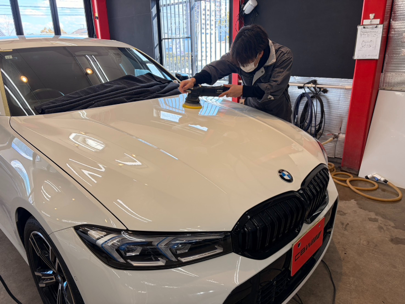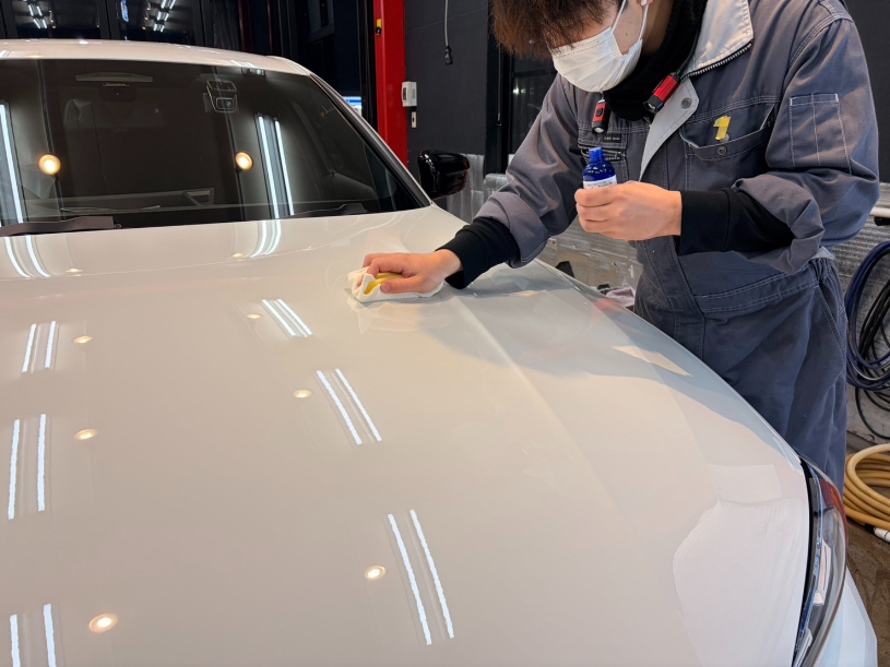 下地の磨きから洗車、コーティング塗布、そして専用ヒーターによる焼き付けまで、一台一台丁寧に作業を行っています。細部にまで手をかけることで、仕上がりの艶と耐久性が高まります。