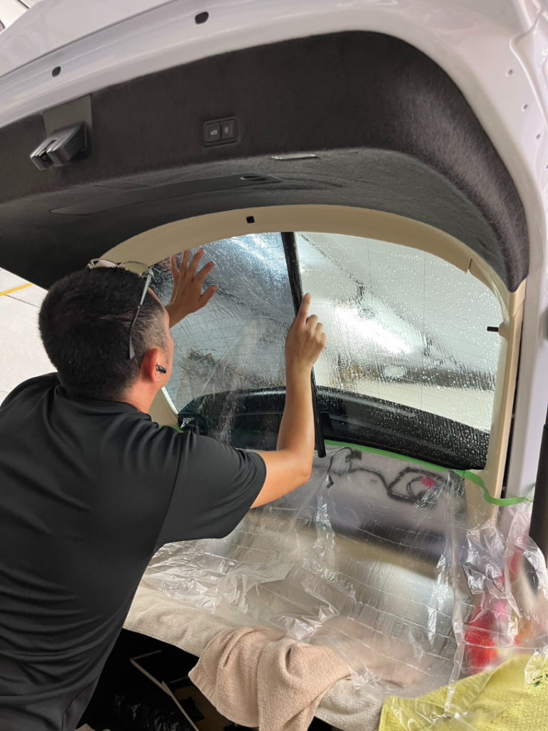 カーフィルムはお客様のご希望に合わせ、プライバシー性と快適性を高める仕上がりに。