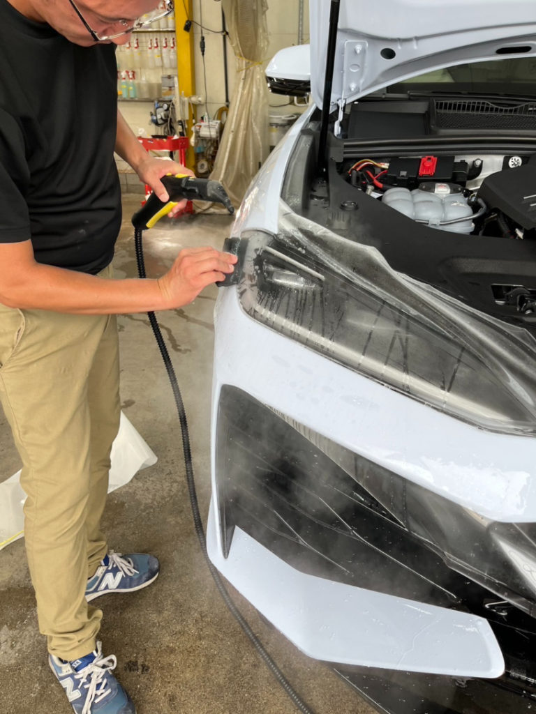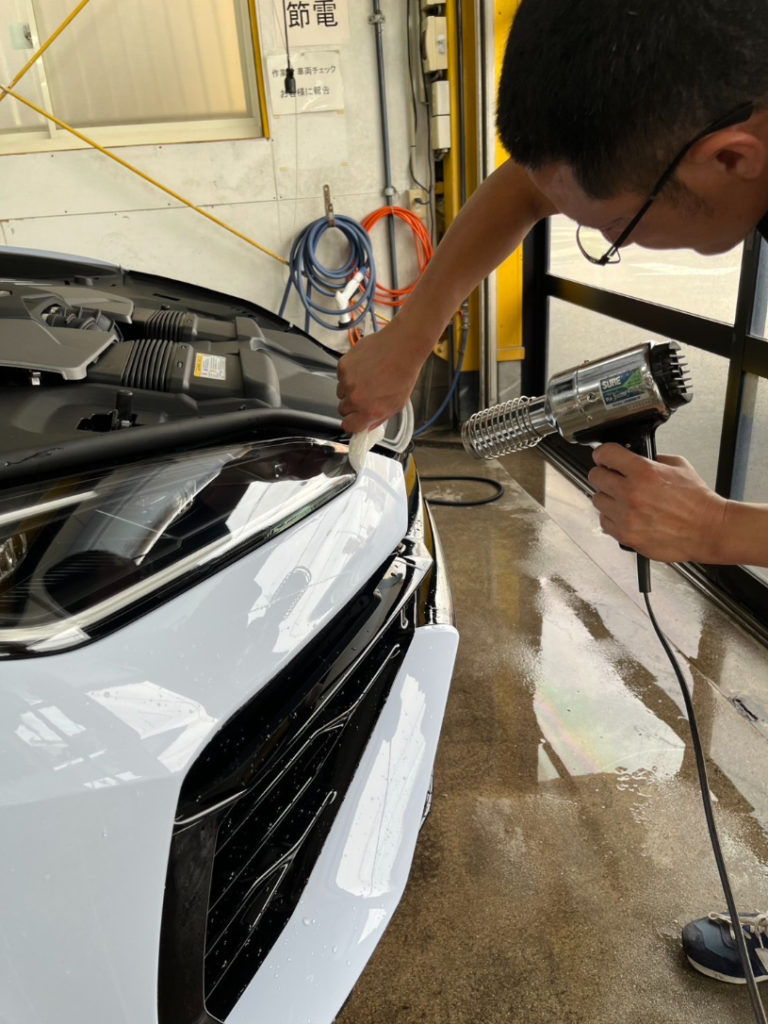 ヘッドライトにはプロテクションフィルムを施工し、飛び石や細かな傷からレンズを守りながら、美しい透明感を長く維持できる仕様となりました。