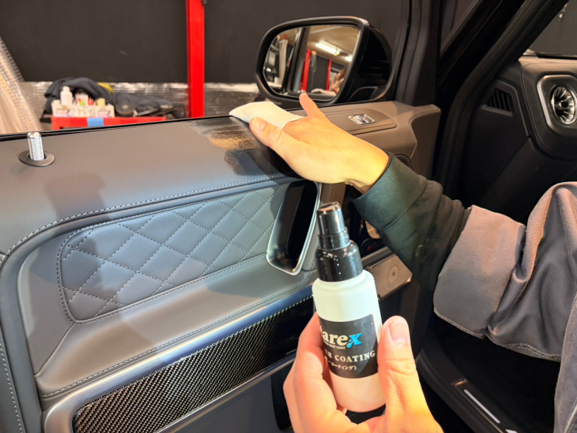透明な保護膜で内装をコーティングすることで、汚れ・擦れ・色移りなどを防ぎ、きれいな状態を長く保つことができます。