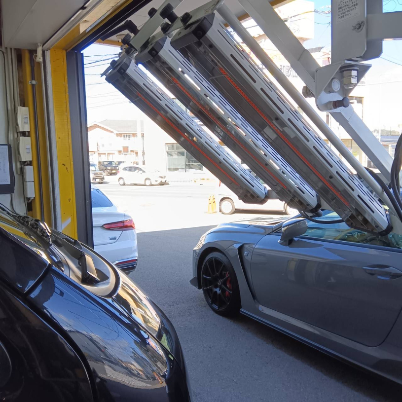 下地の磨きから洗車、コーティング塗布、そして専用ヒーターによる焼き付けまで、一台一台丁寧に作業を行っています。細部にまで手をかけることで、仕上がりの艶と耐久性が高まります。
