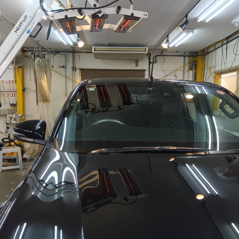 下地の磨きから洗車、コーティング塗布、そして専用ヒーターによる焼き付けまで、一台一台丁寧に作業を行っています。細部にまで手をかけることで、仕上がりの艶と耐久性が高まります。