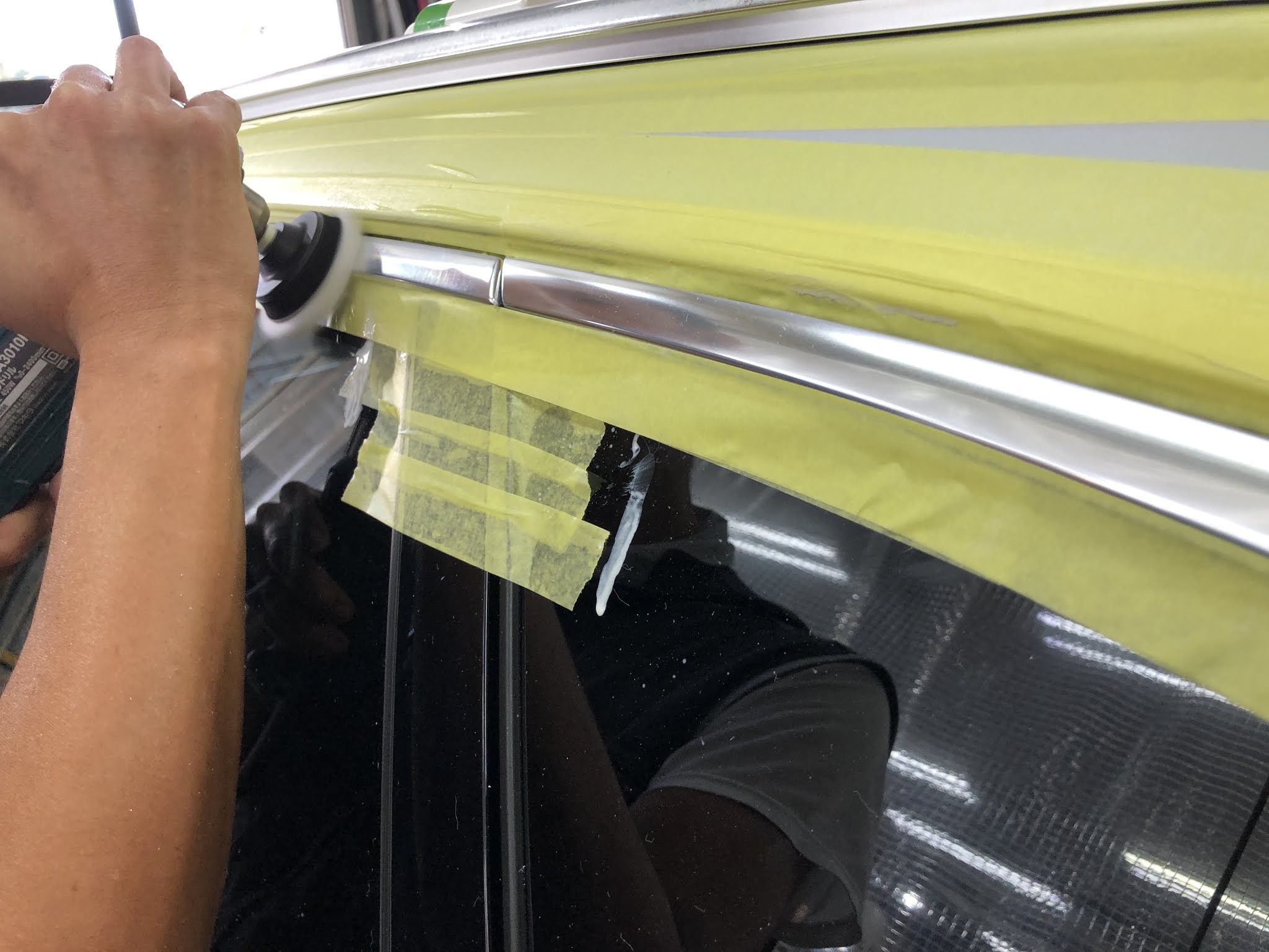 特殊なポリッシャーとコンパウンドを使い根気よく磨いていきます。