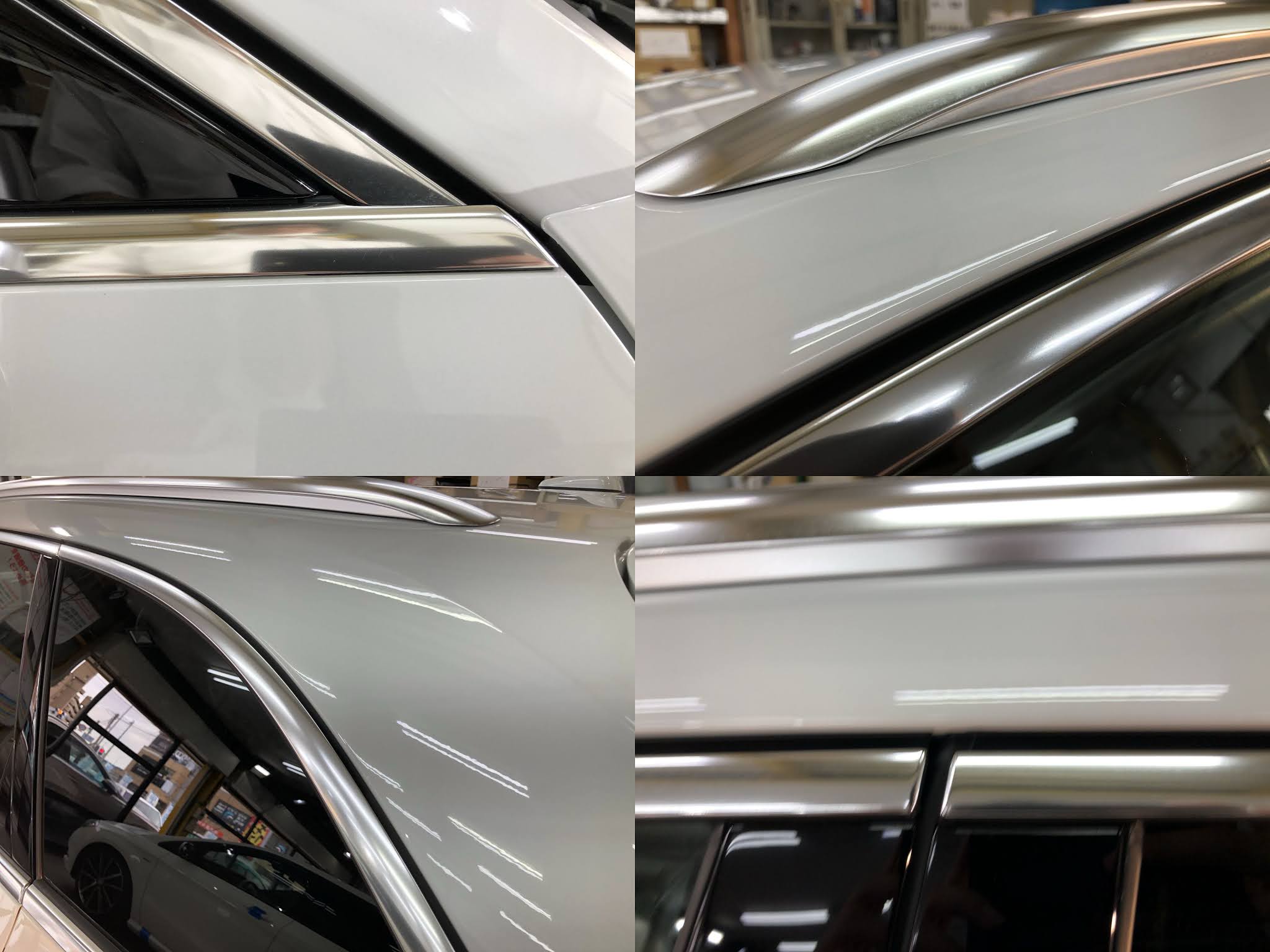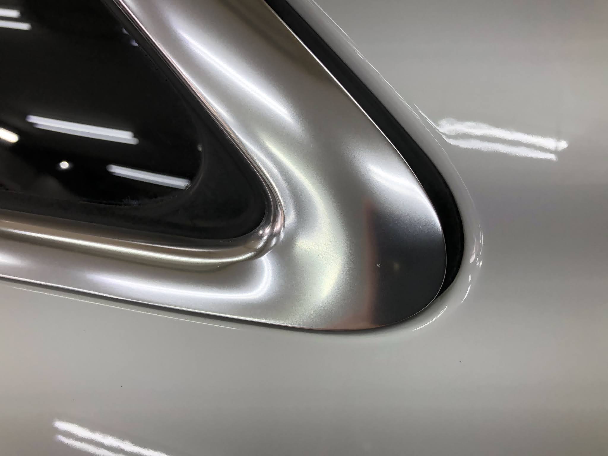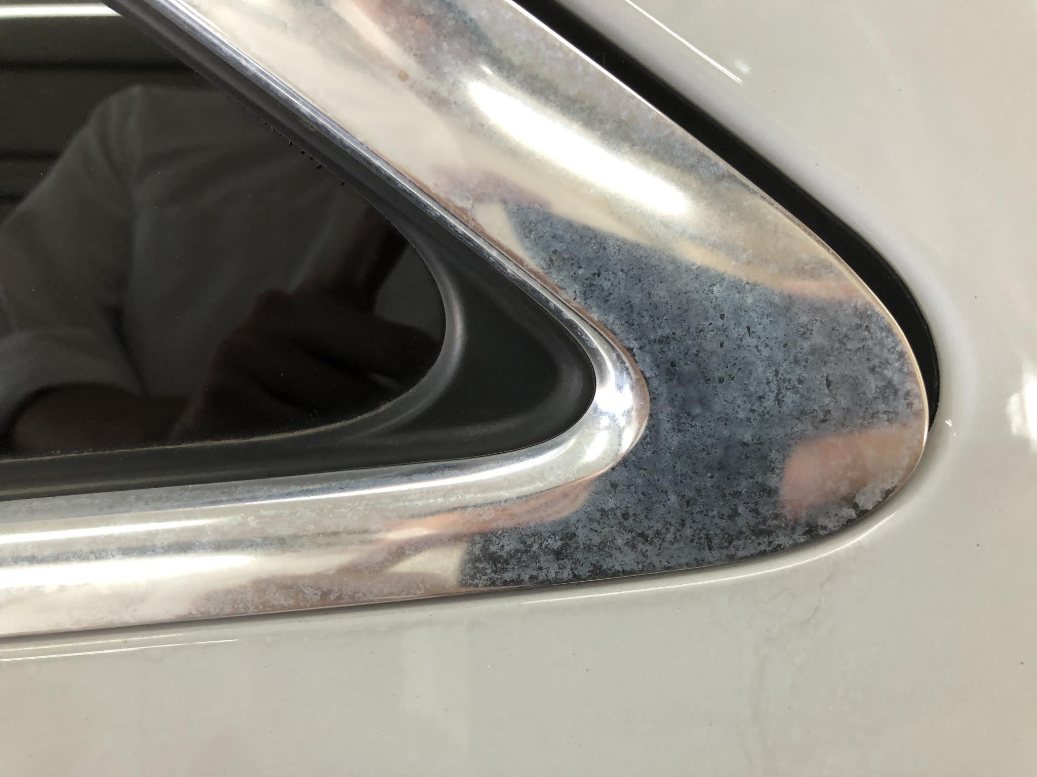 欧州車特有の腐食・白濁してきていましたので、磨いてキレイにしてからメッキモールコーティングで保護しました。