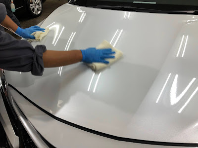 ベースコートと同じくセッティング時間をとりトップコートを専用のクロスで拭き上げます。