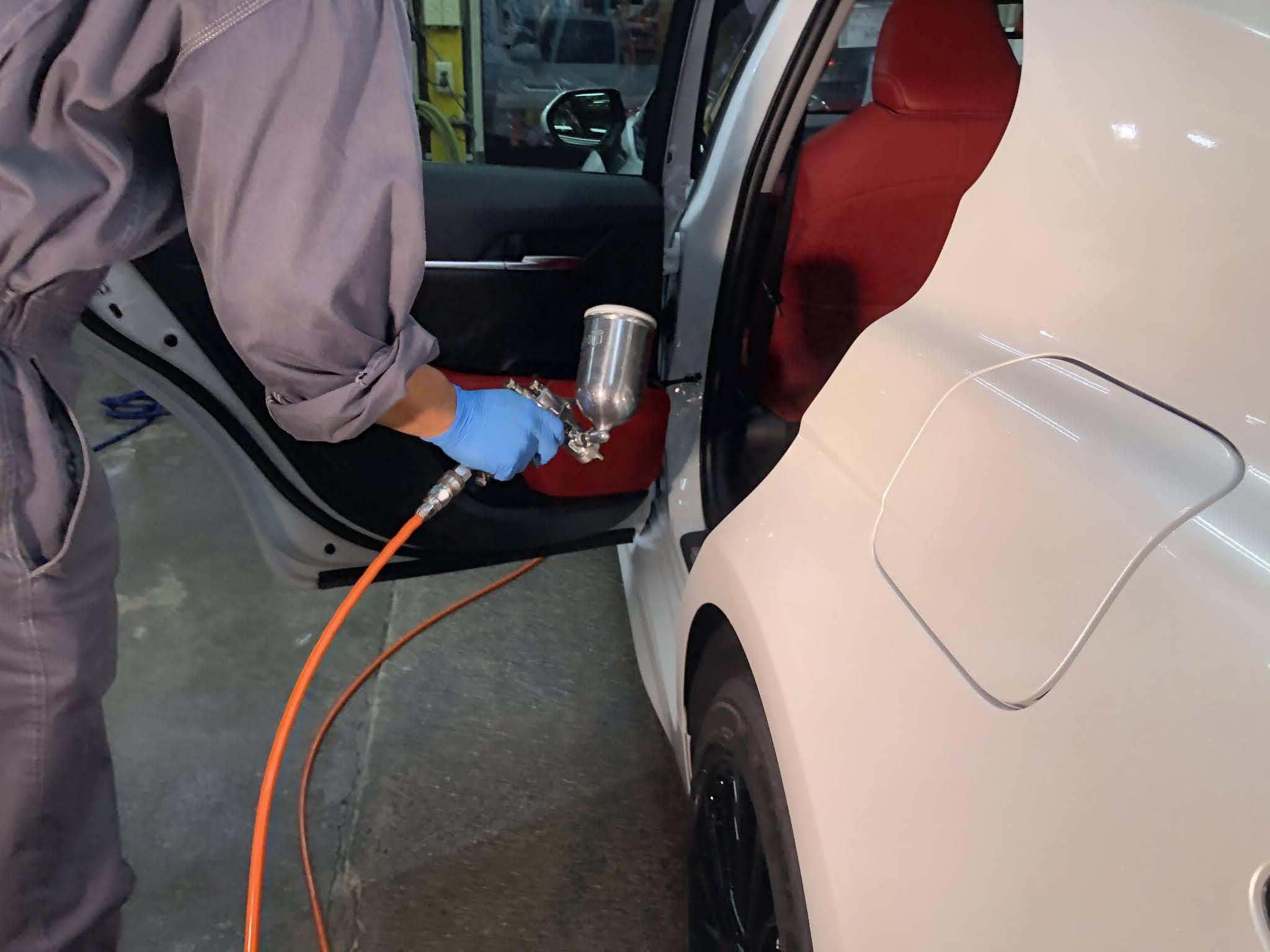 Gガードガラスコーティングは2層のコーティングで、1層目のベースコートは吹き付けによるコーティングです。