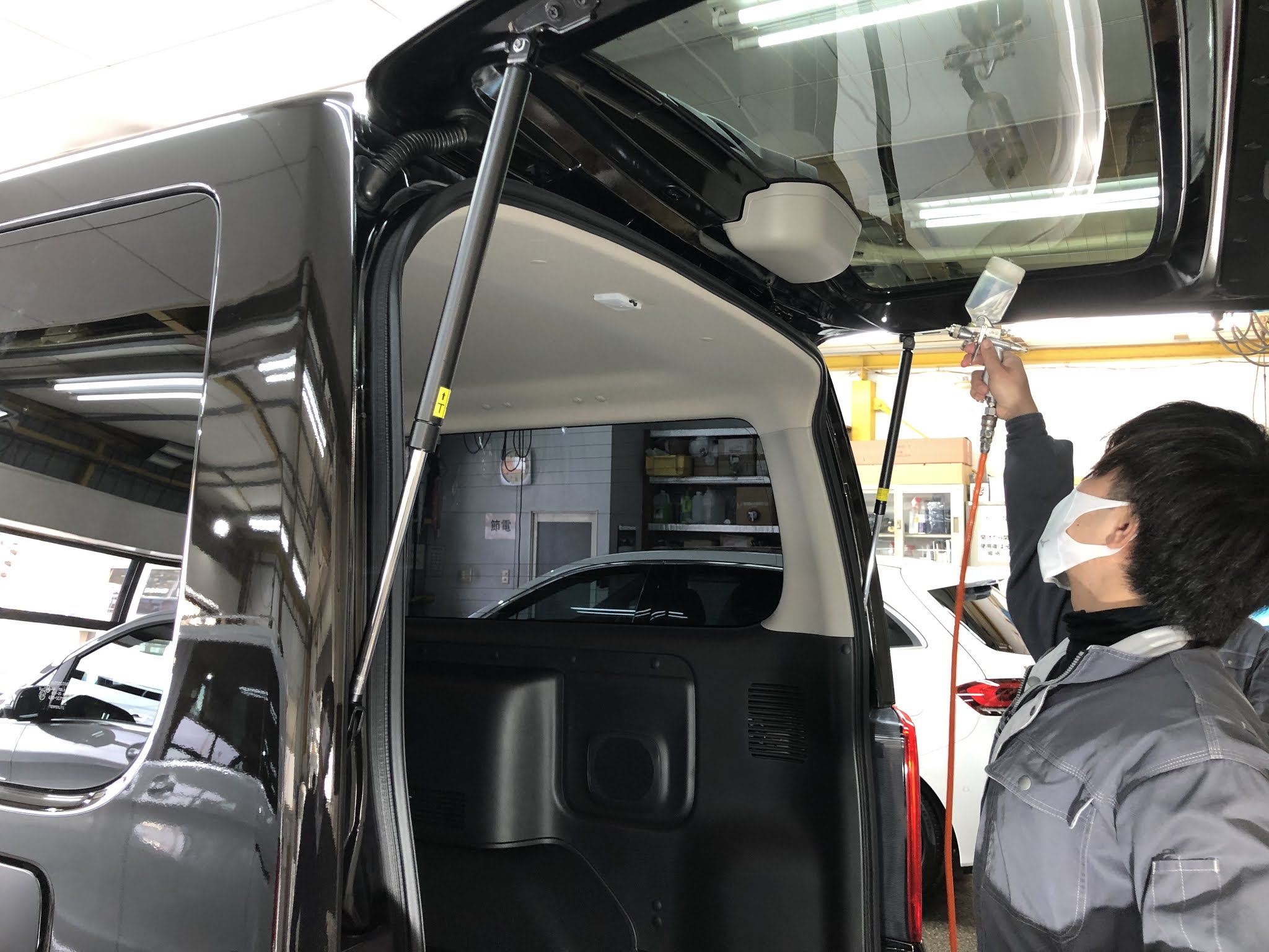 ドア内、リアゲート内、ボンネット内側までしっかりコーティングします。
