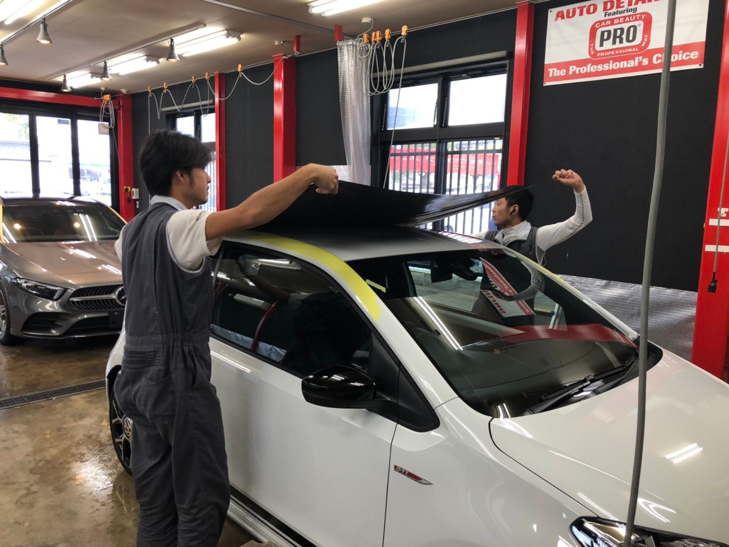 まずはルーフにフィルムをのせます。