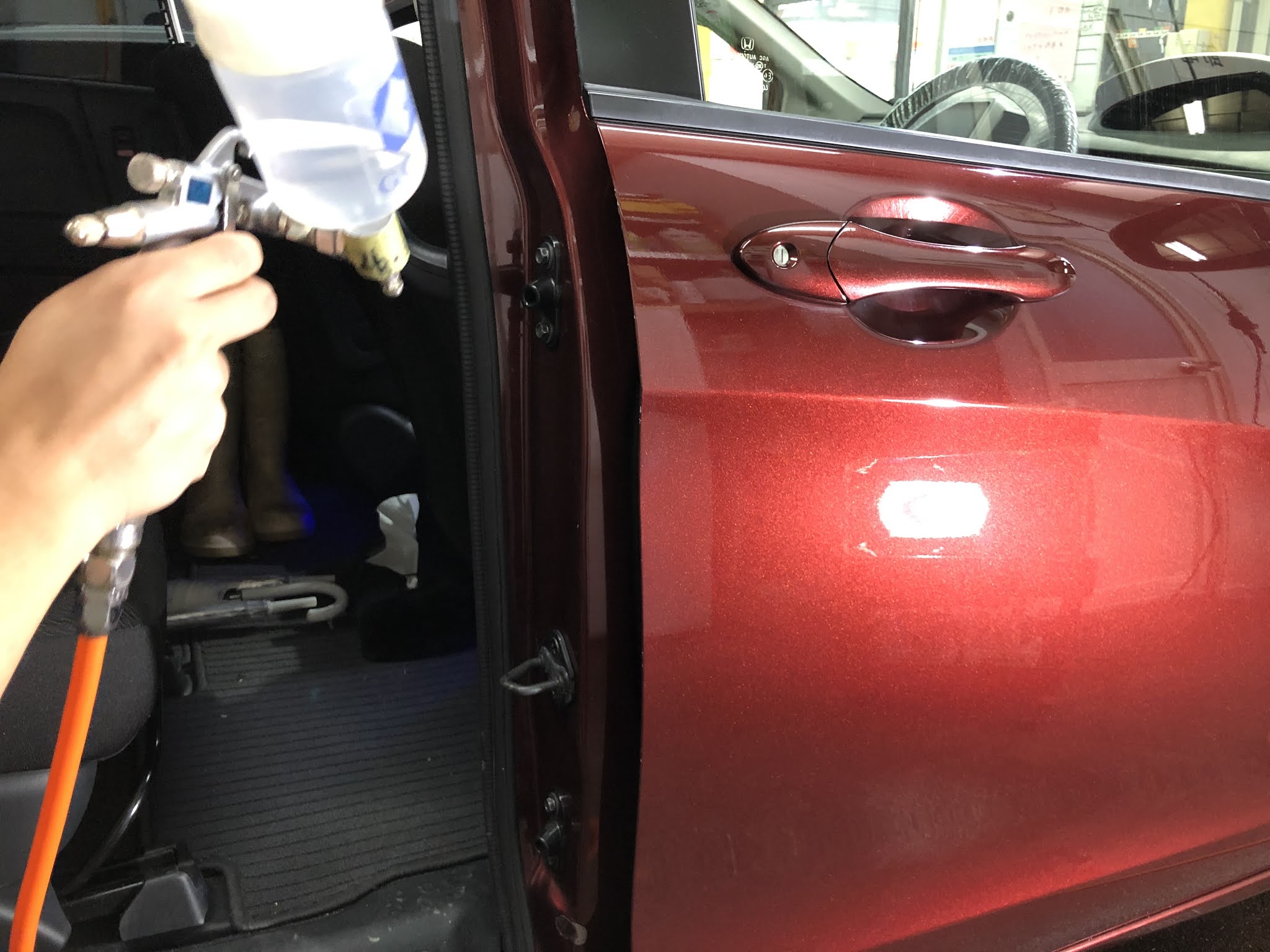ボンネット裏、ドア内、トランク内の細かい所まで施工できるのがGガードのスプレー工法のメリット!