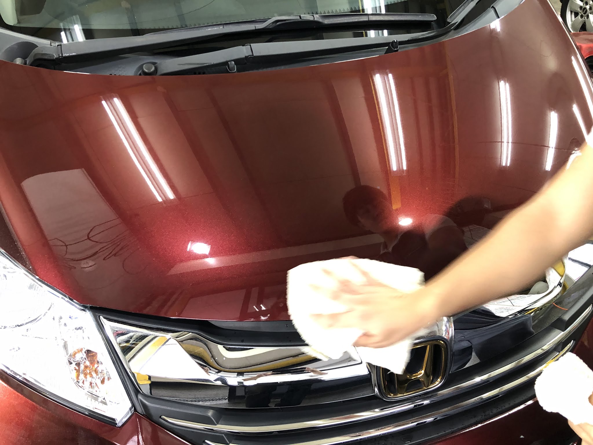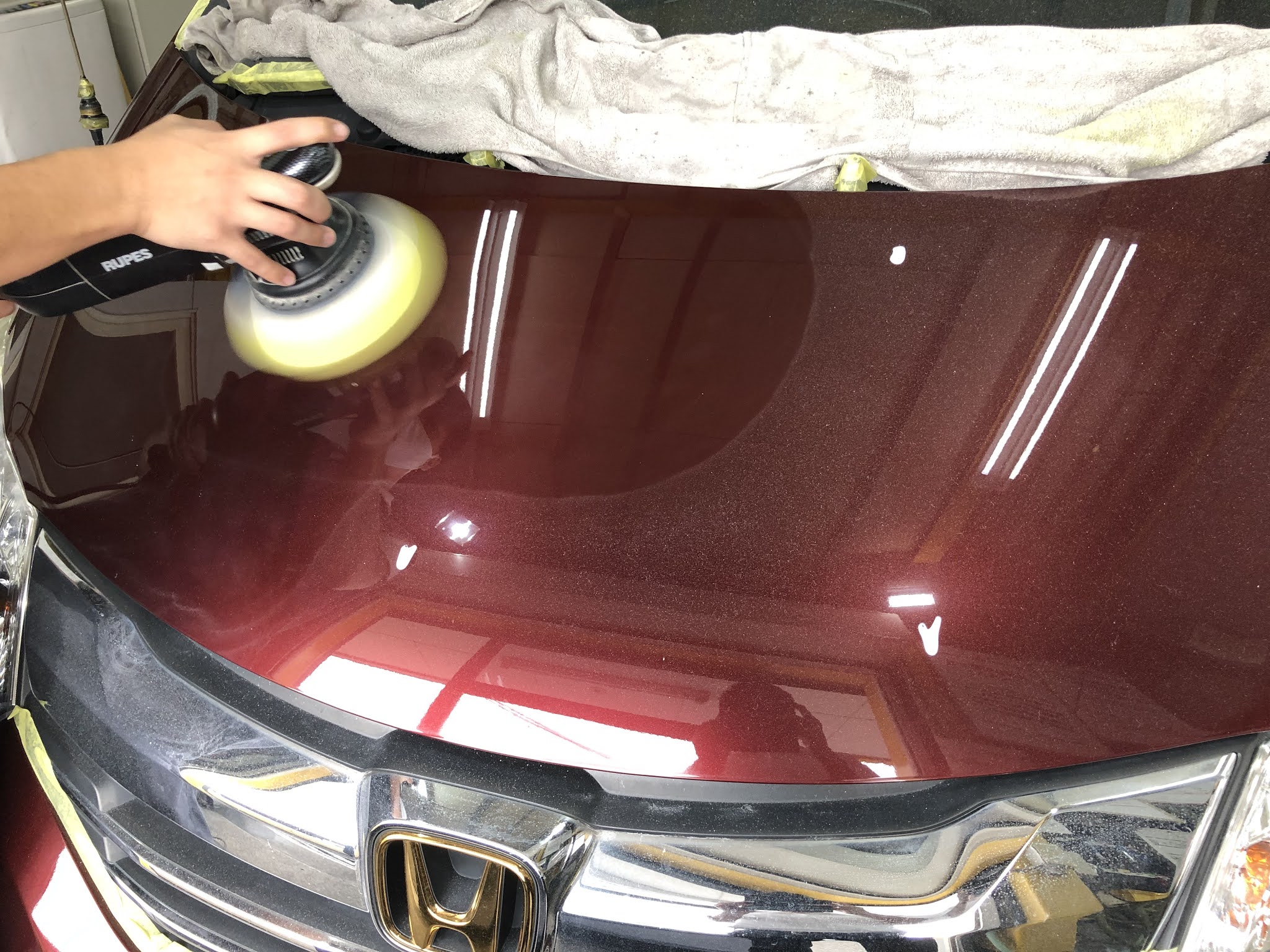 まずは磨きから!ホンダの塗装は柔らかくキズが入りやすい分取れやすくもあります。