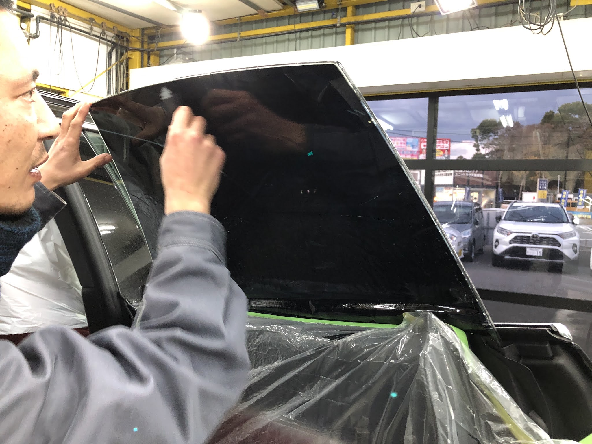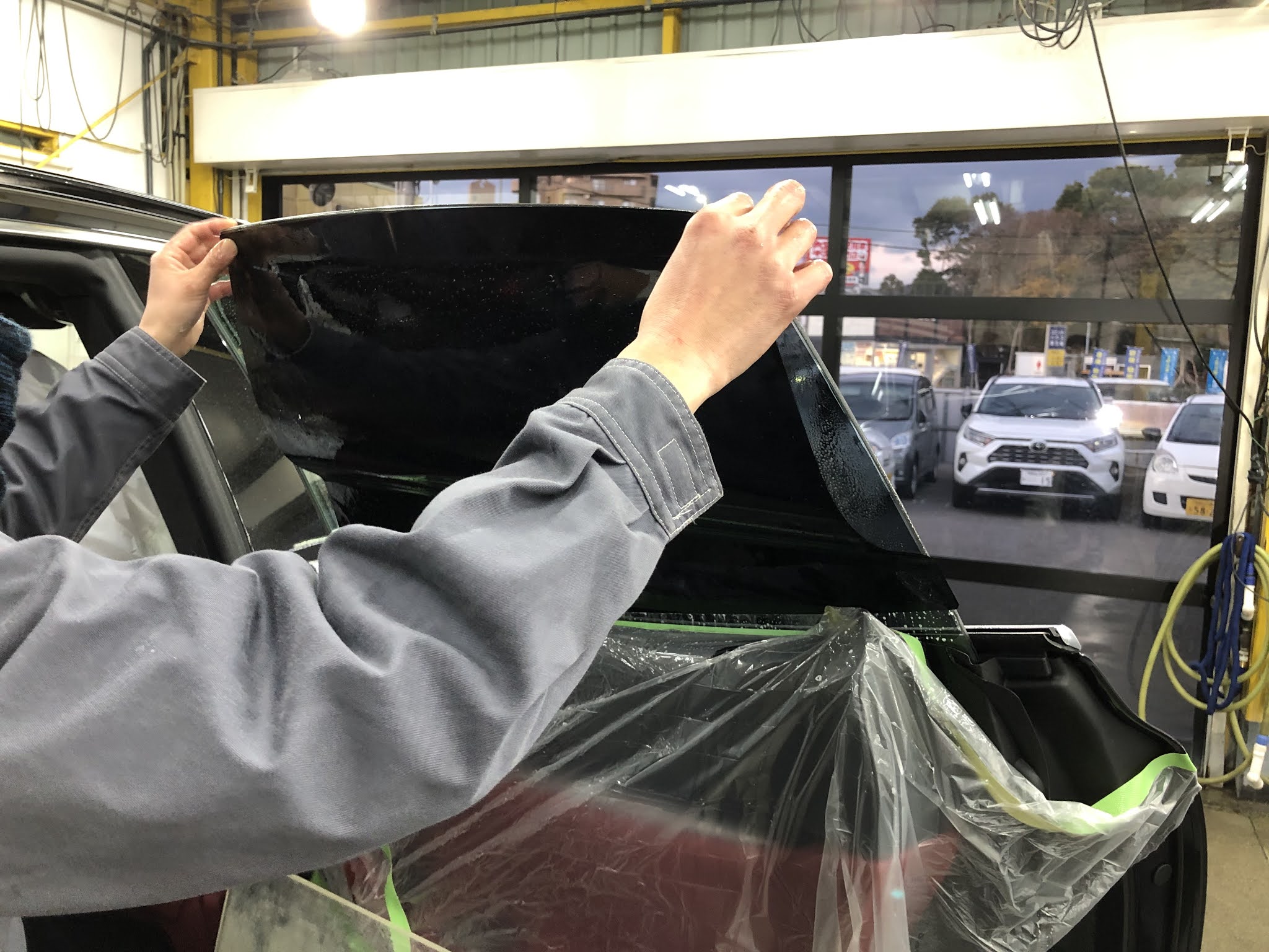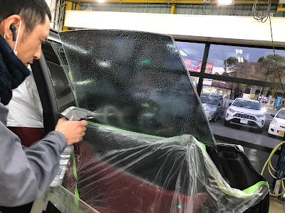 施工前のリアガラスです。また前が透けて見えます。