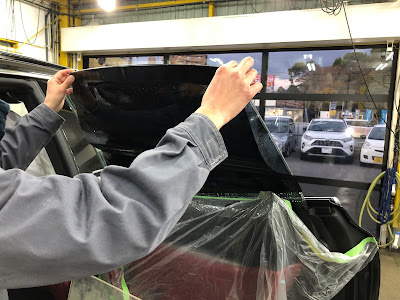 元々フィルムを貼っていて今回はその上から重ねて貼ります!さらに一番濃いハードスモークを貼るので真っ黒になると思います笑