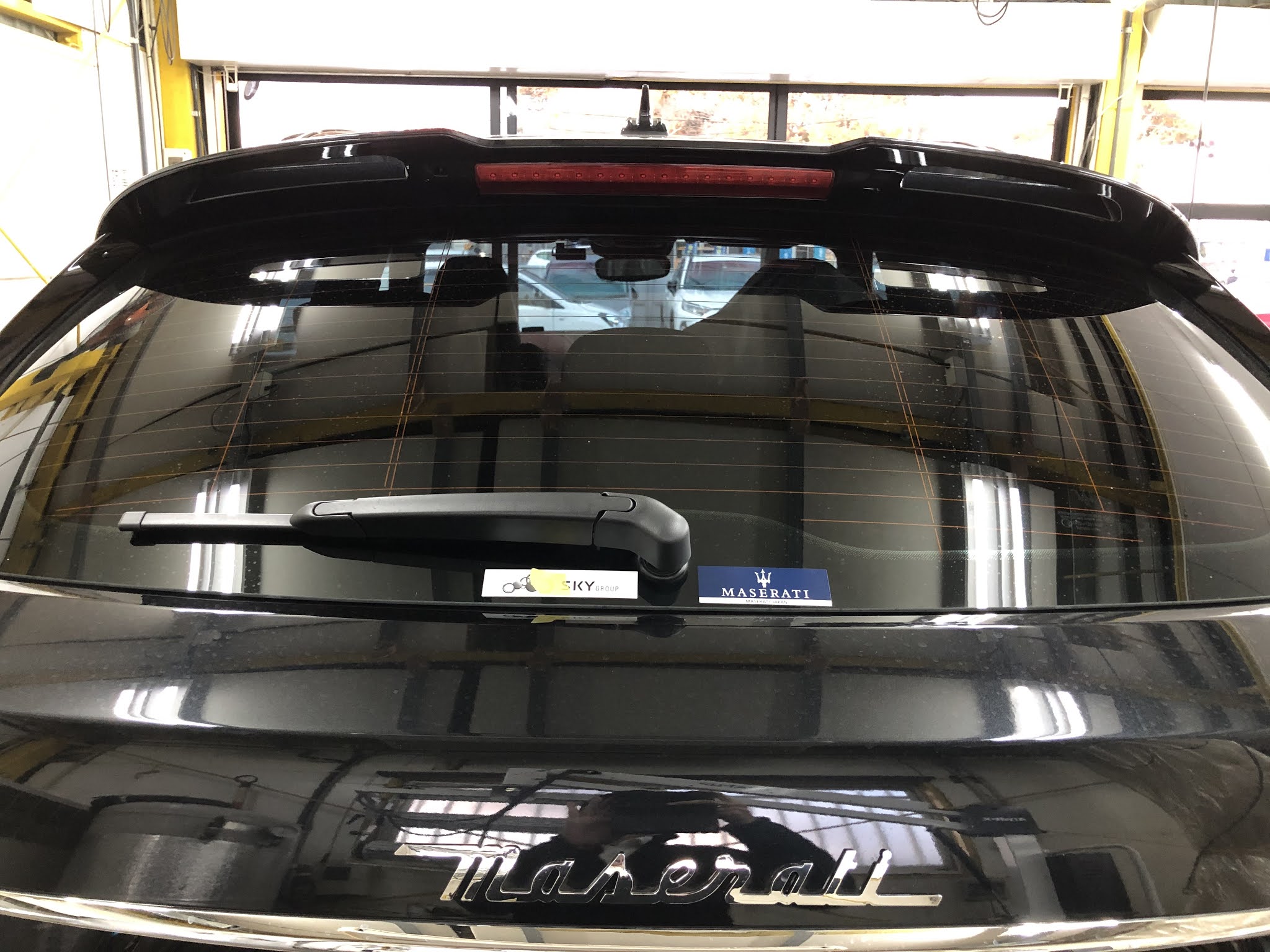本日はマセラティ「レバンテ」のリア5面にカーフィルムを施工しました。