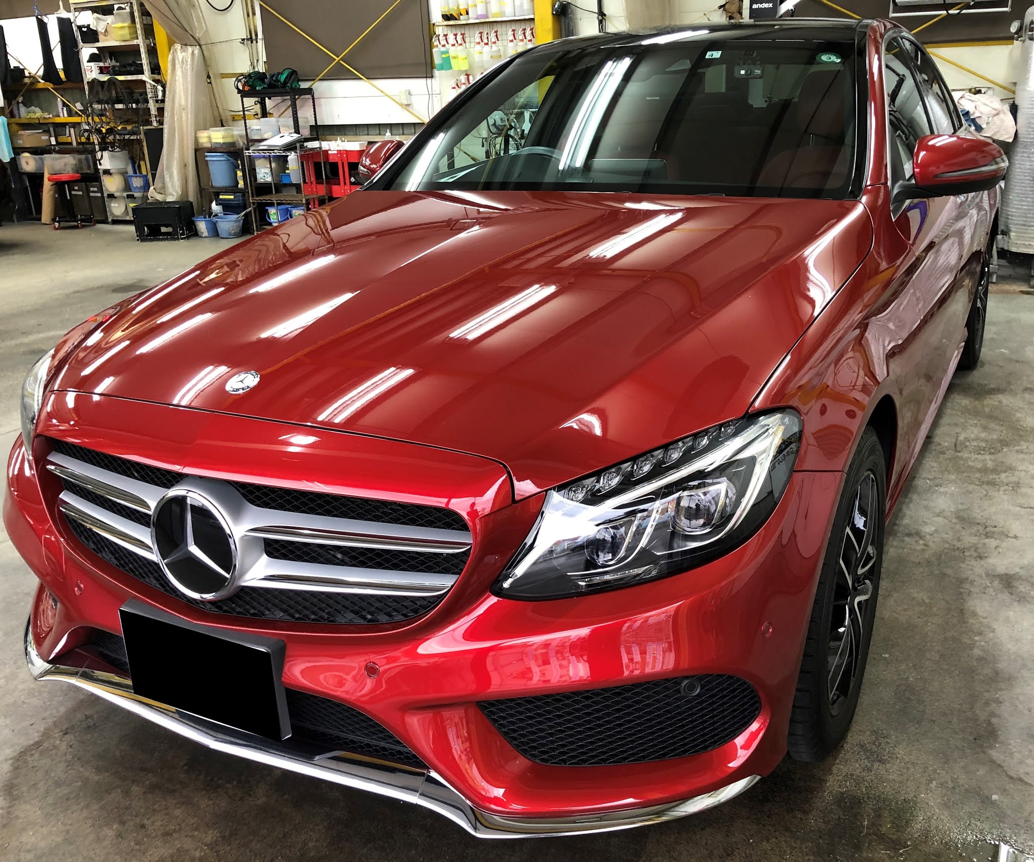 本日はメルセデスベンツ「Cクラス」に5年サポートGガードガラスコーティングとモールコーティングを施工した様子をお届けします!このCクラスに乗り出して4年くらい経ってきて、ボディの水垢やシミが気になりだして一度綺麗にして乗りたいとご相談を受けお預かりいたしました。またフロントガラスやルーフのガラス部分にもウロコがついていましたので、そちらも磨いて除去致しました。