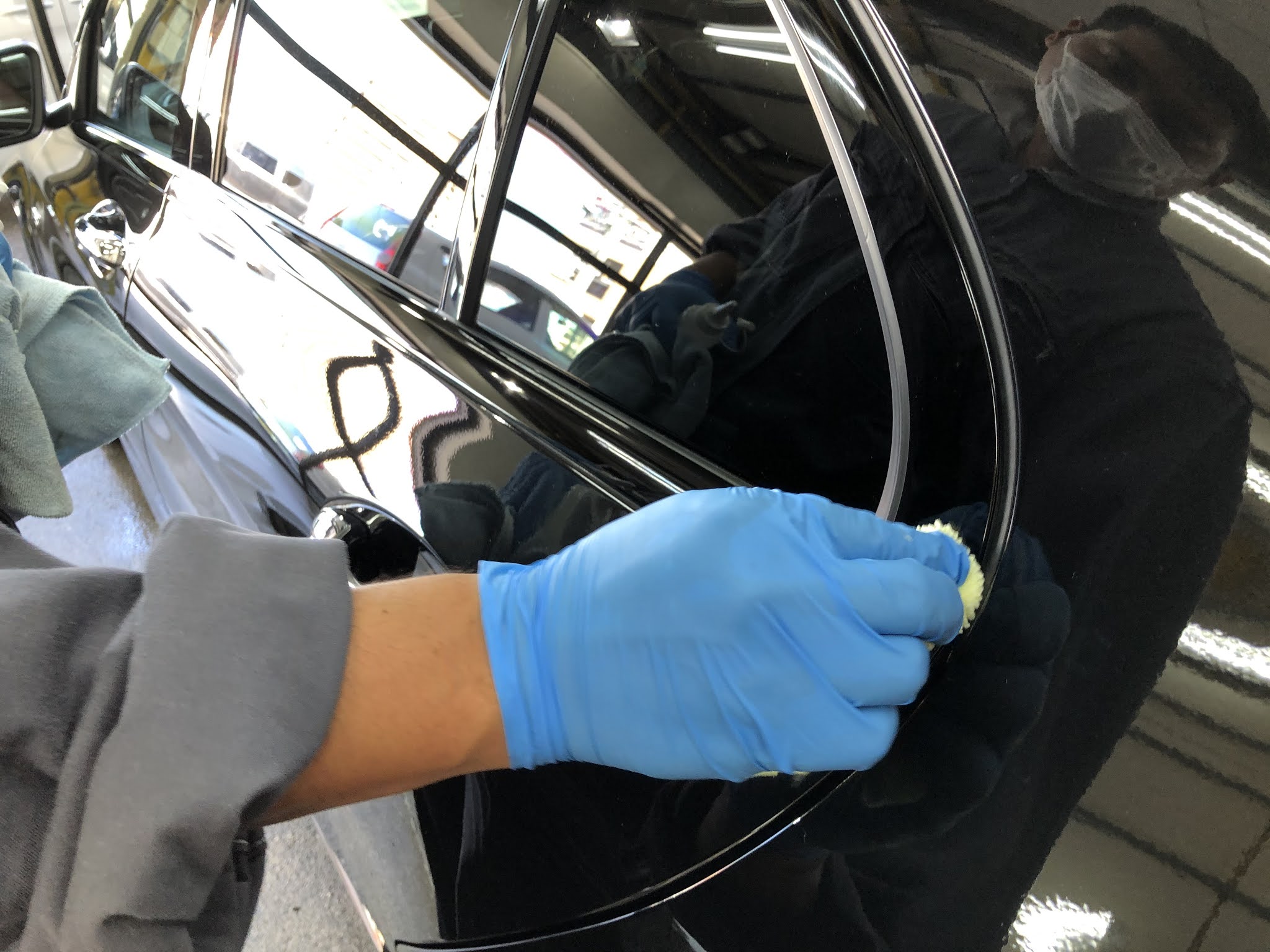 本日はメルセデスベンツ「C43」のモールを磨いてコーティングしました!