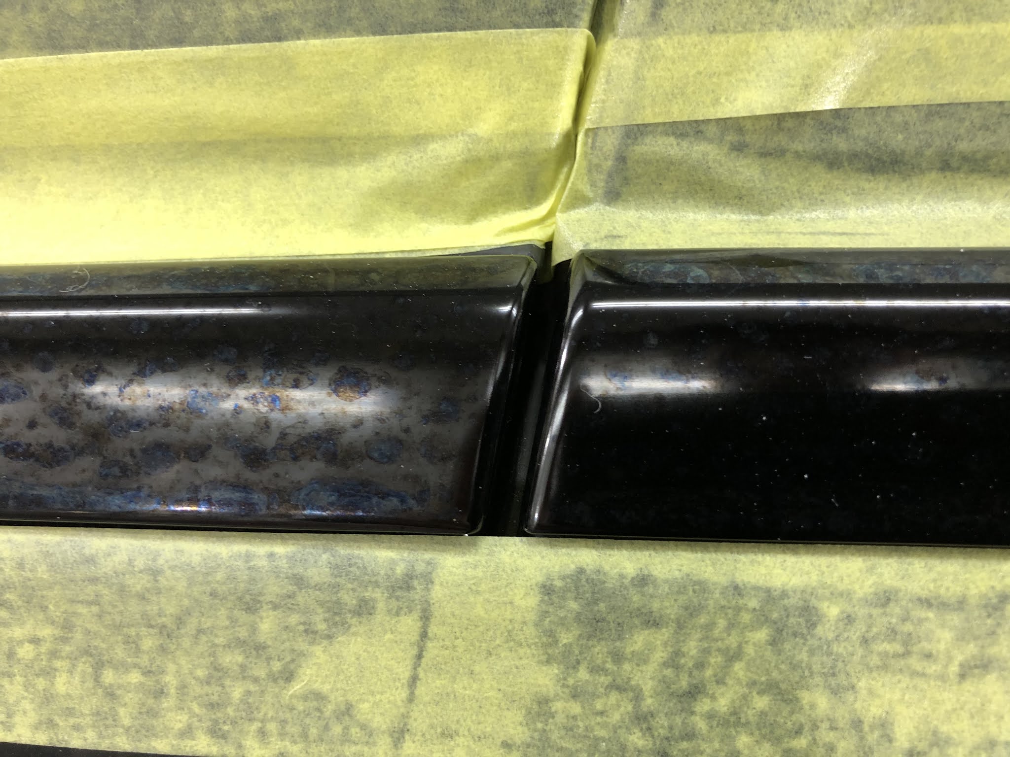 こちらが磨く前のモールです。シミが目立ちますね。