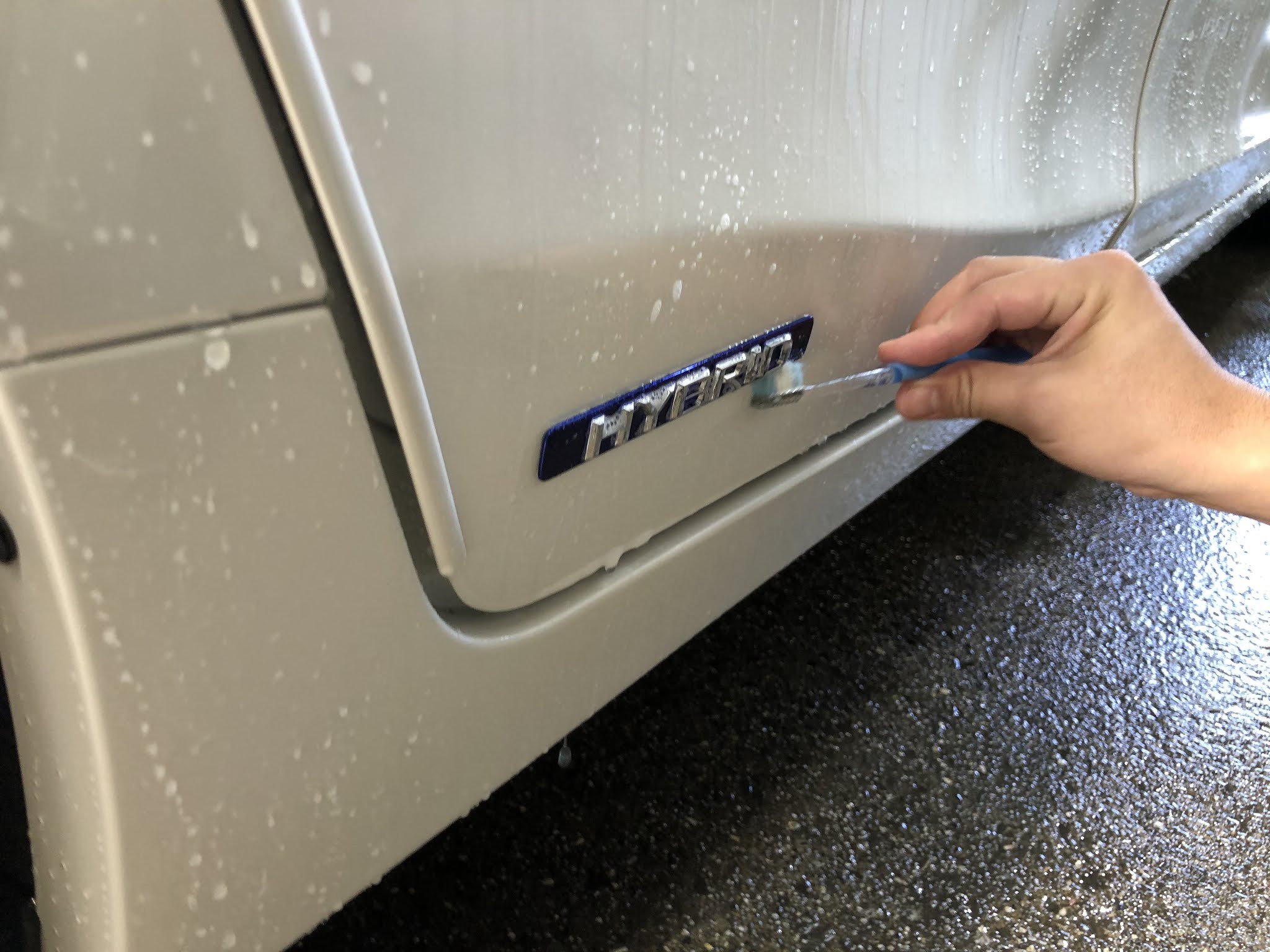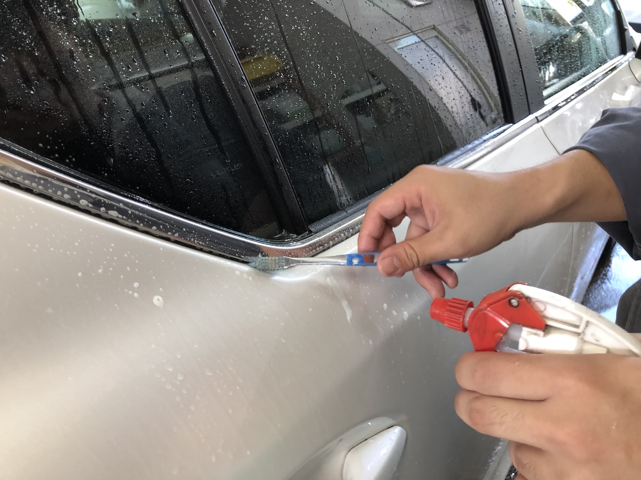 ブラシなどを使い分けてモールの隙間なども洗います。
