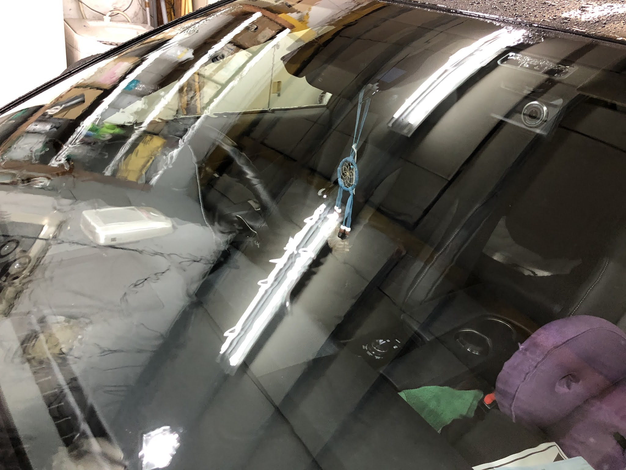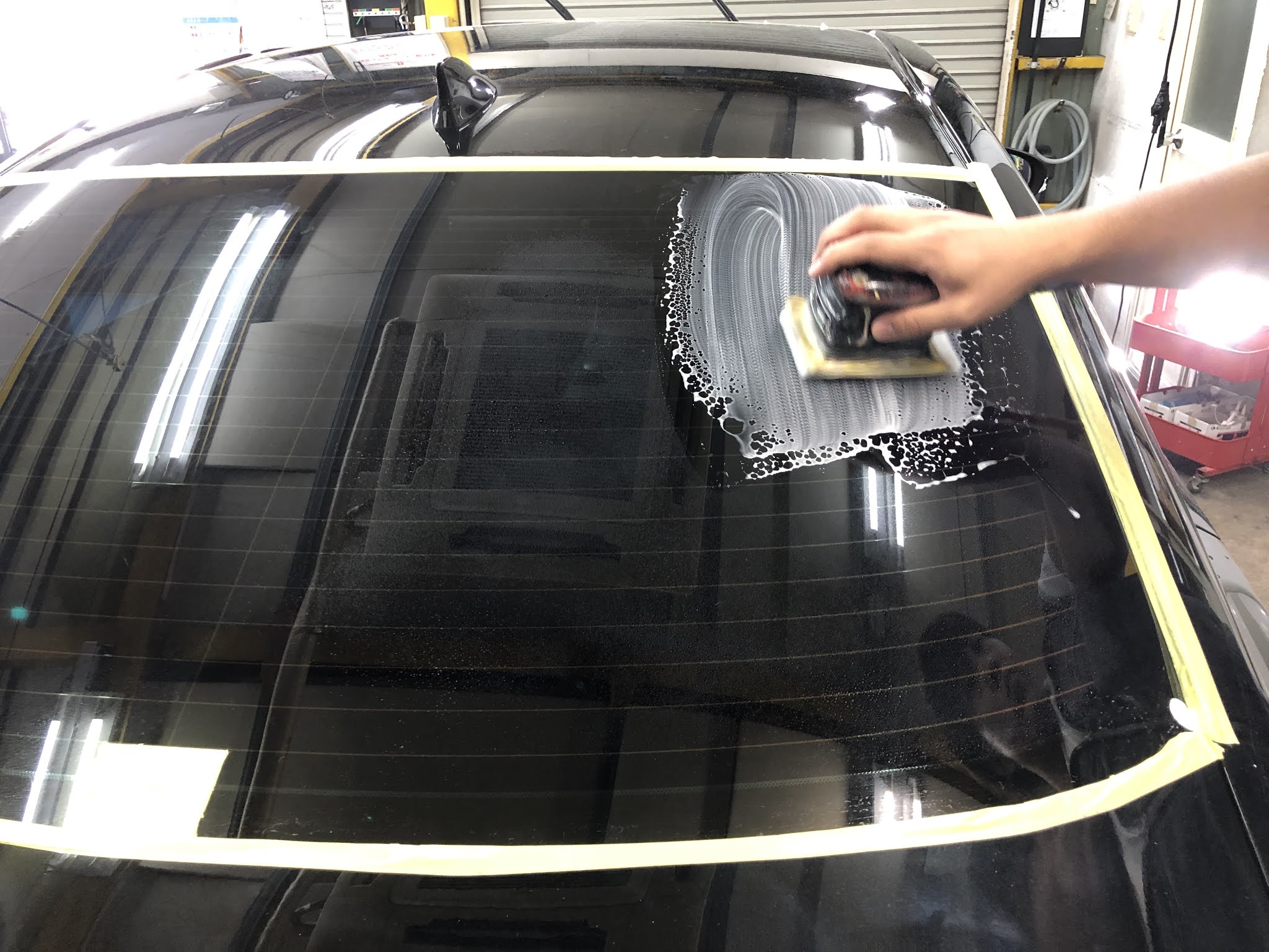 先ずはガラスの研磨からです。これまでの撥水剤や油膜を根こそぎ除去していきます!