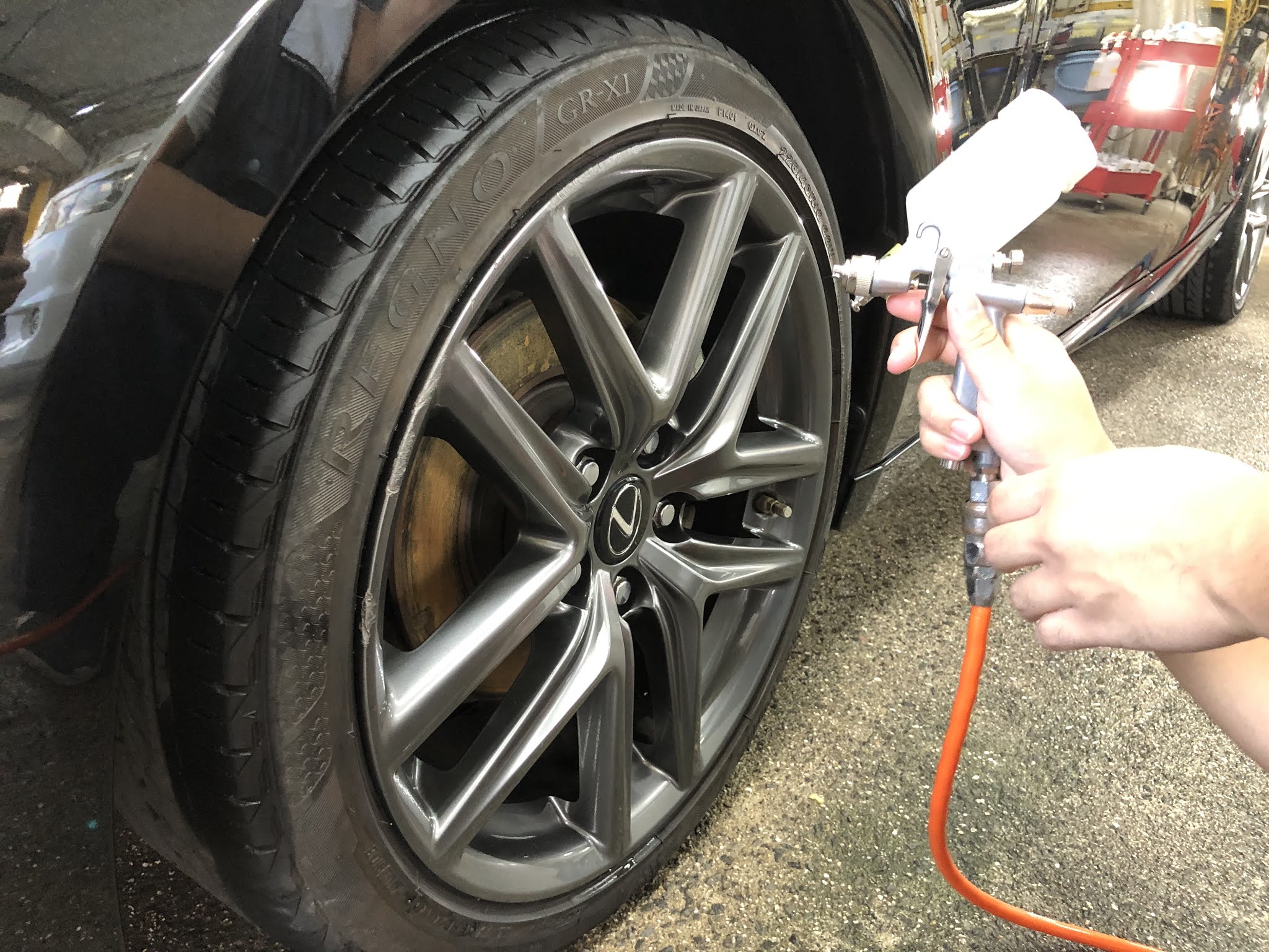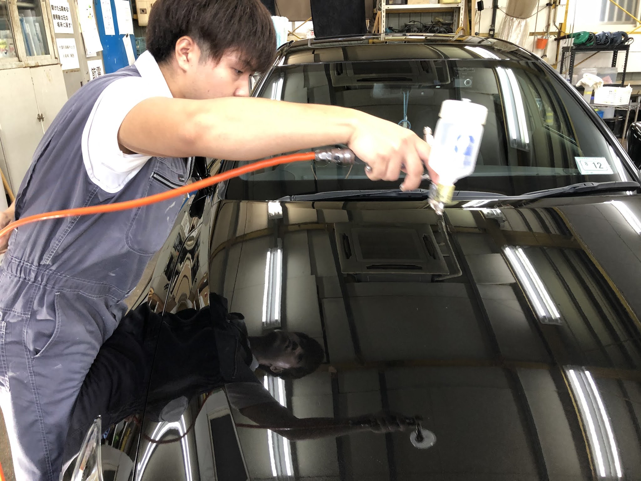まずはメイン!磨きをした艶々の塗装にGガードを吹き付けている写真です!