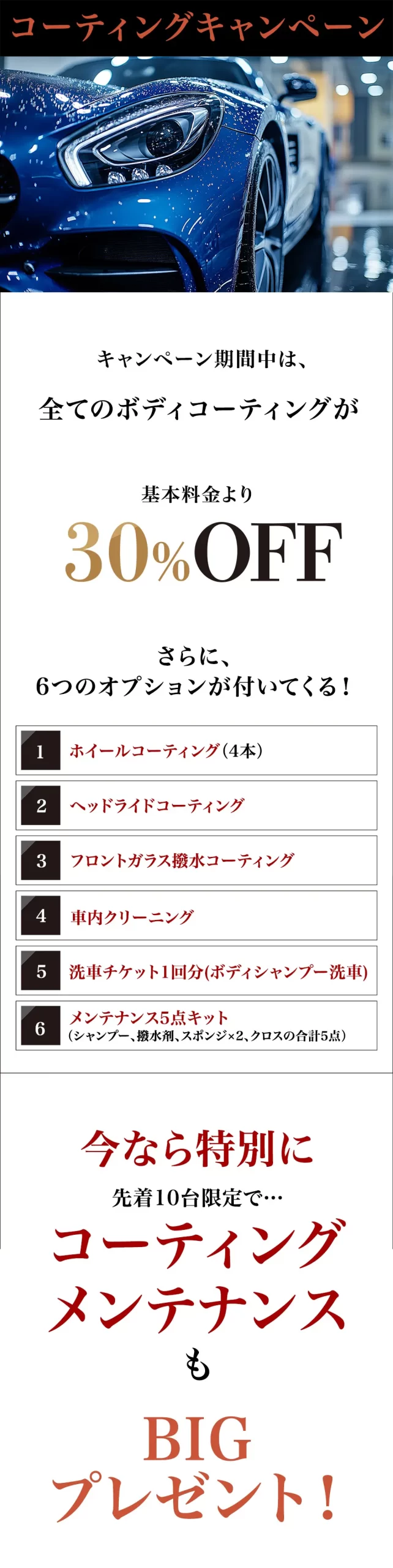 カービューティー・ワカヤマでは、お客様のニーズに合わせておすすめのコーティングプランを提案しています。