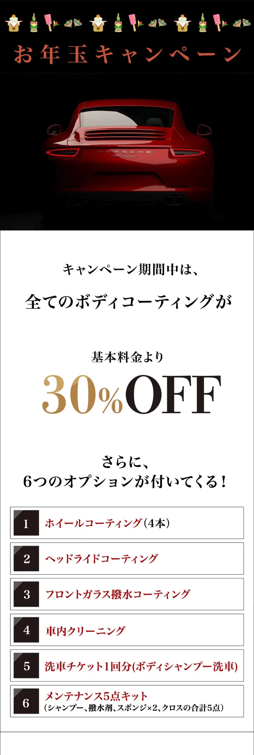 なお、全てのコーティングプランに「クレンジング」と「ポリッシュ」が含まれていることをご了承ください。